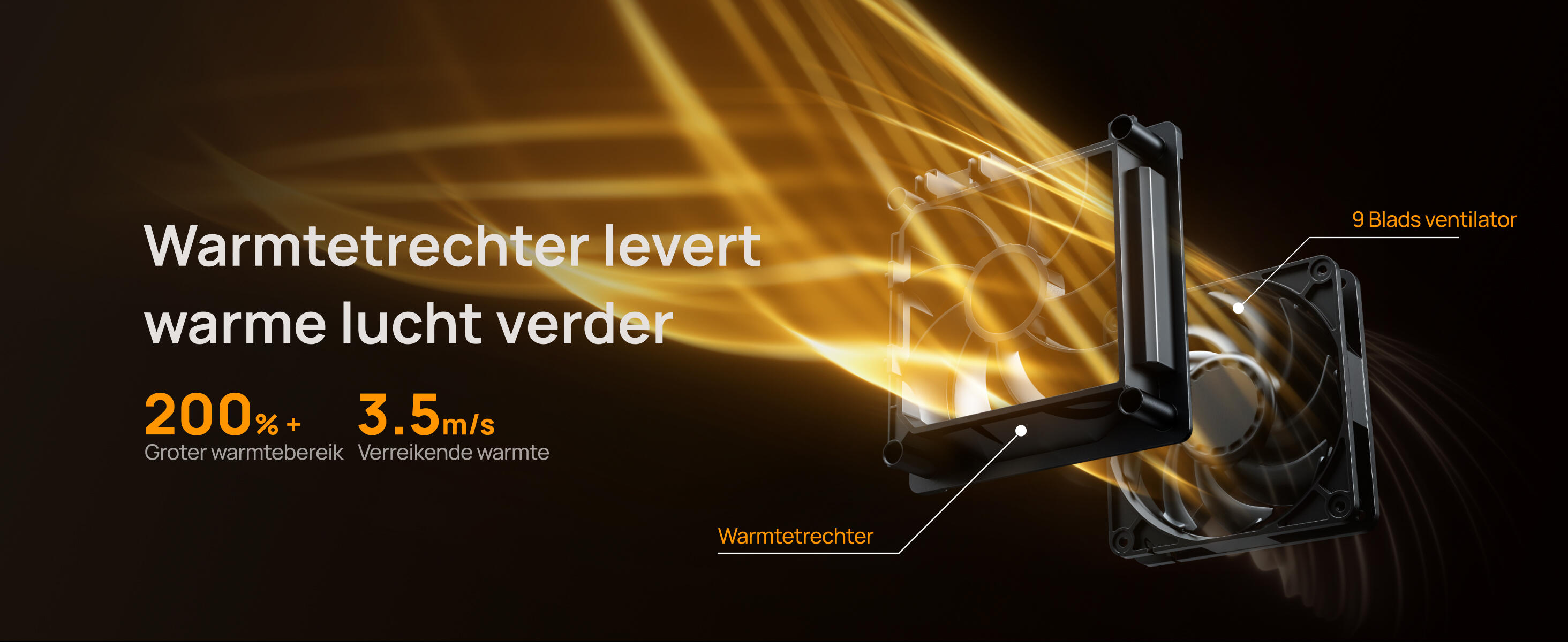 - 10,5 ft/s Snelle Warmteafgifte: Het geoptimaliseerde luchtstroomsysteem versnelt de circulatie van warme lucht, waardoor ruimtes sneller en gelijkmatiger worden verwarmd.