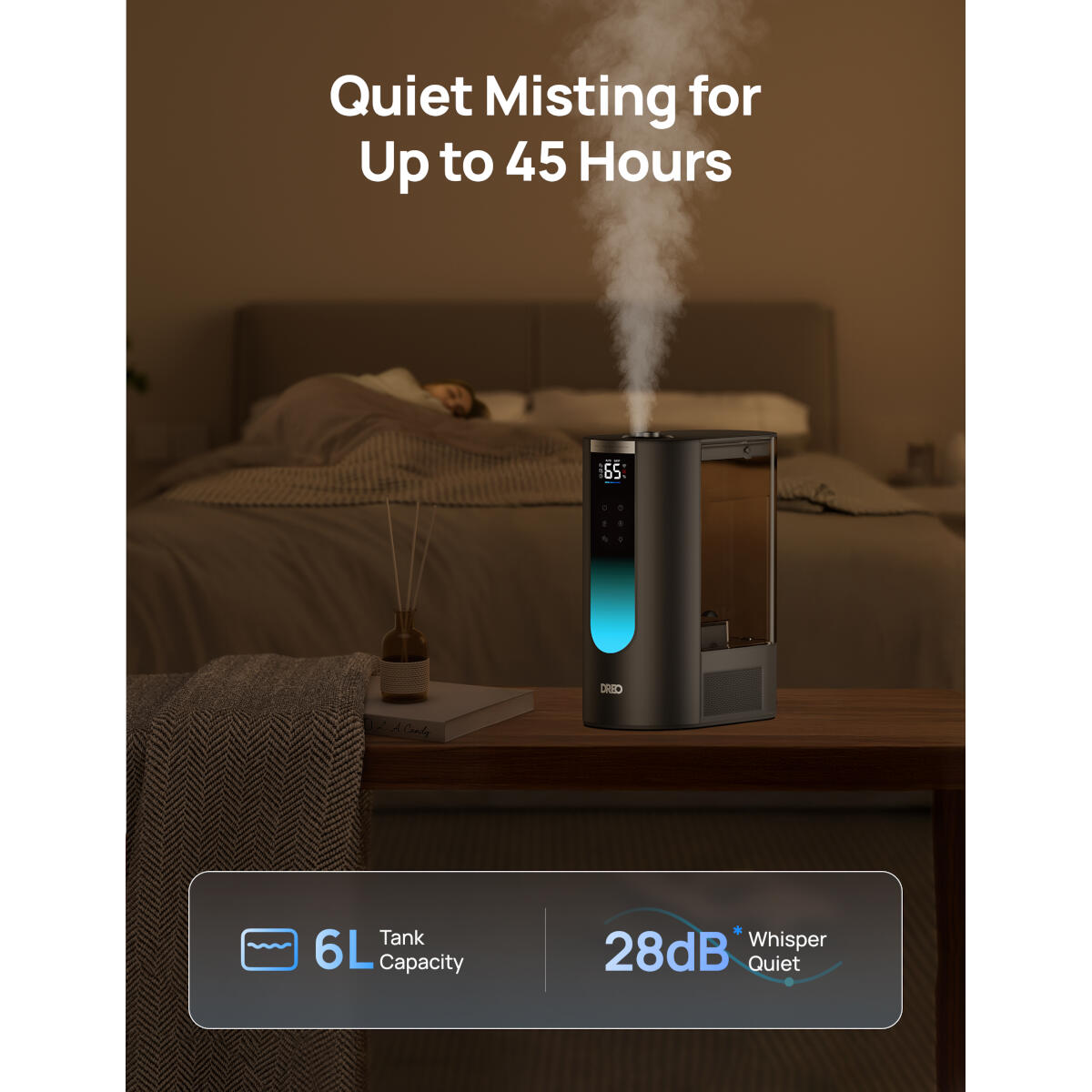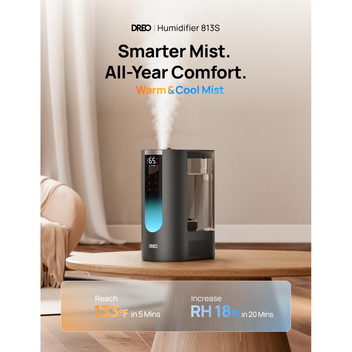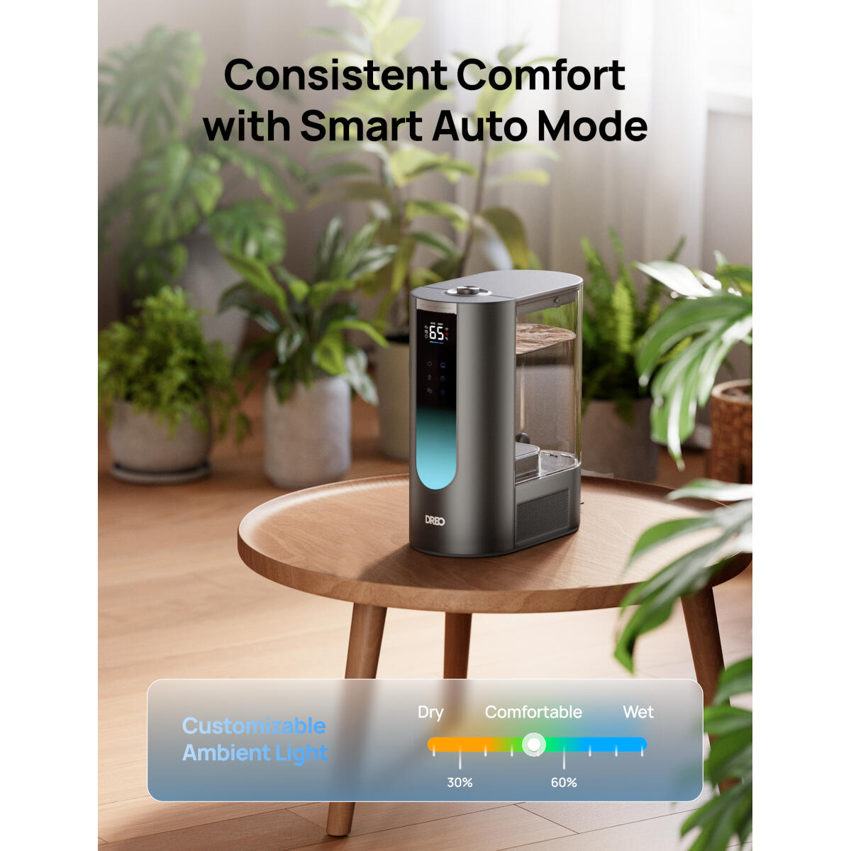 Warranty2 year NBSmart ultrasonic humidifier with 4.5 L top-fill design, app & voice control, adjustable mist output, and automatic humidity regulation. Features ultra-quiet operation, sleep mode, and continuous 360° mist diffusion for large rooms or bedrooms.